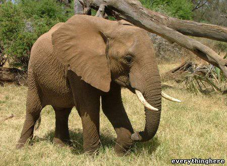 يستعمل الفيل أنيابه لحفر التربة بحثاً عن جذور النباتات التي يحبها ويحتاجها غذاءً .